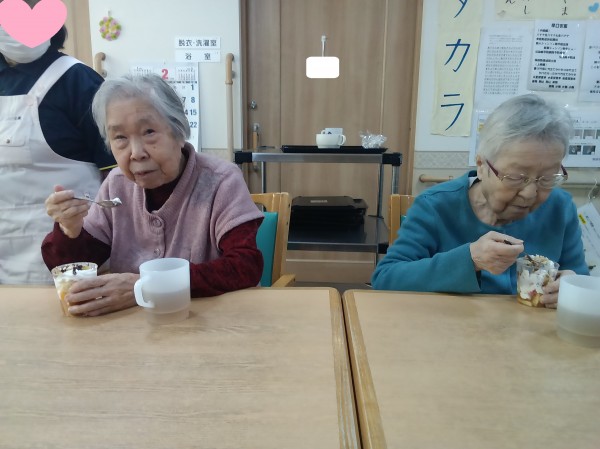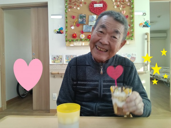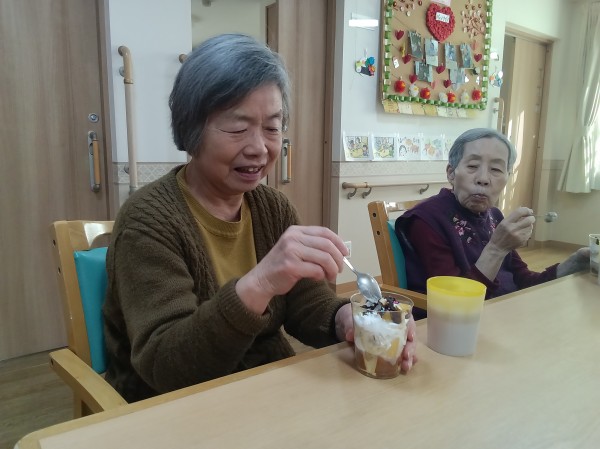 バレンタインデーも重なり、おやつはチョコレートパフェ風に作り、召し上がっていただきました。
