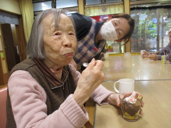 パフェ手作りおやつでみなさんとお祝いしました(^_-)-☆