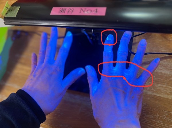 しかし、手洗いチェッカーで確認すると… 「あまり落ちてない!」 という驚きの結果が!
