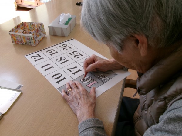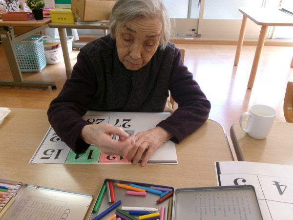 1階では3月のカレンダーをみんなで作る作業をしました。各自の好きな色でカレンダーを塗りました!