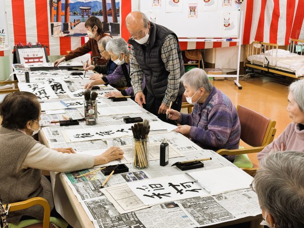 ご利用者様が書いた作品をスタッフが飾っています。本格的ー!