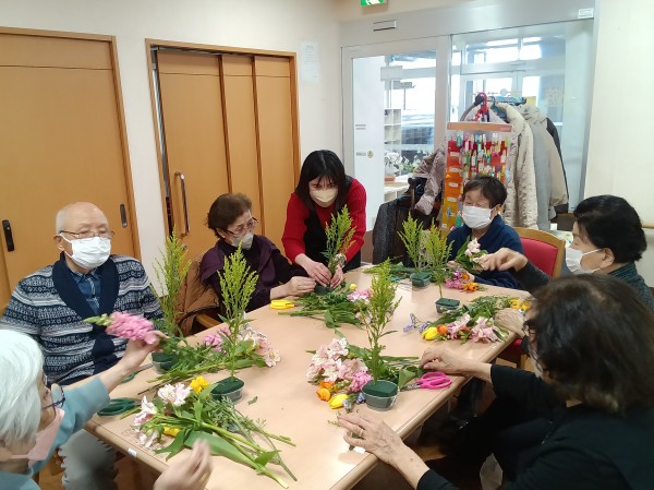 スポンジの横にもお花を活けて行きましょう!とのお話がありました。