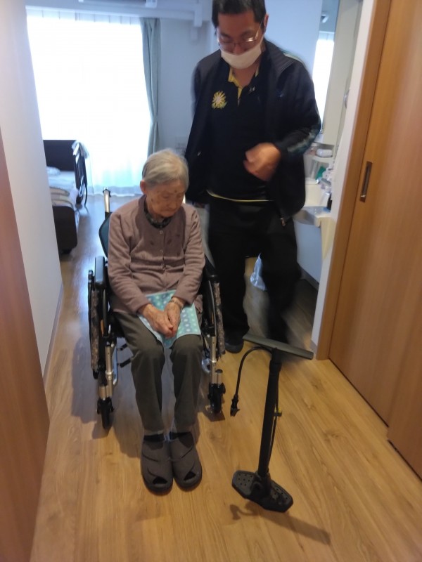 タイヤの空気圧の確認し、必要時にタイヤに空気を入れます。