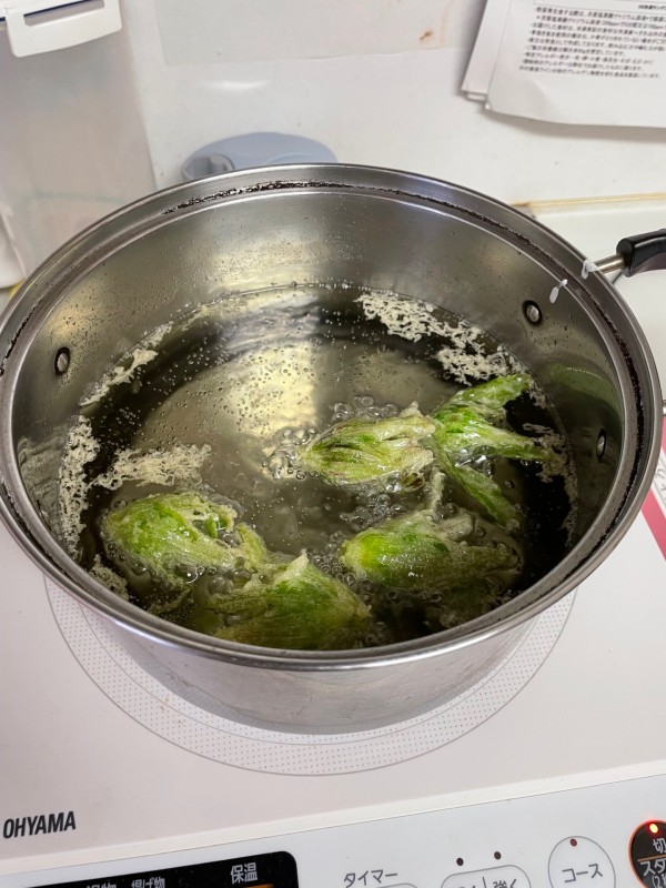 採ったふきのとうは、おやつの時間に天ぷらにして、春の恵みを味わいました。