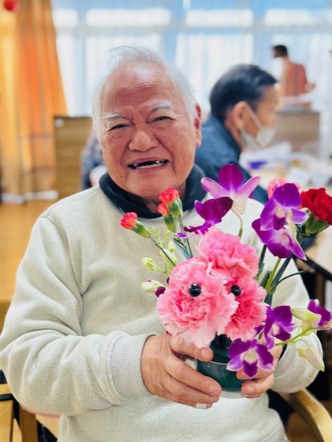 本日午後のレクリエーションは「フラワーアレンジメント教室」