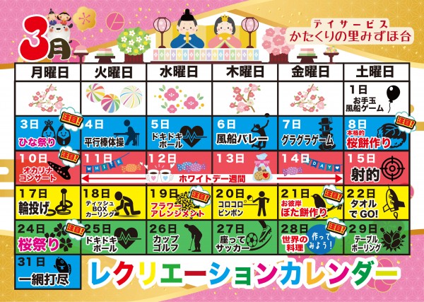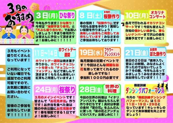 3月も「ひな祭り」「ホワイトデー」「お彼岸・牡丹餅作り」