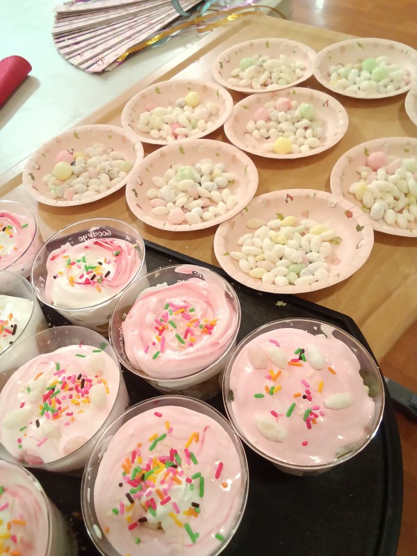 おやつの時間にはひなあられとスイーツでお祝いです。