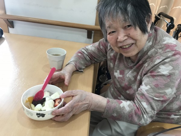 ひなまつりの日におやつレクをしました!クリームあんみつ風です♪
