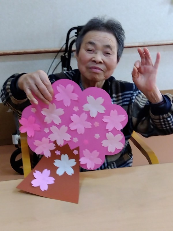 先日、入居者様と一緒に春の壁飾りを作りました。