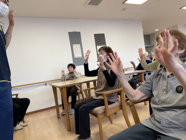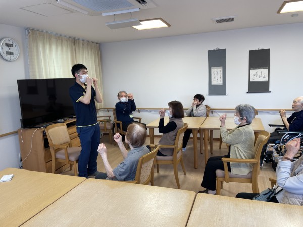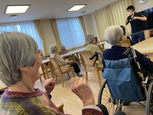 当施設では11時から行なっておりますが、「体操やりますよ〜」の声掛けをしなくてもお客様がいつもの時間という感覚で集まってくれます。
