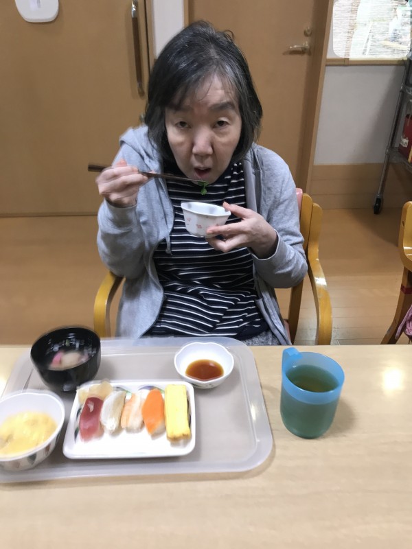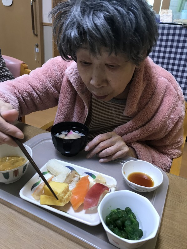 桃の節句御膳、5種の握り寿司、うぐいす豆