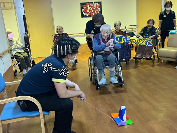 勝利を勝ち取った髙村は、すぐさまご入居者様と