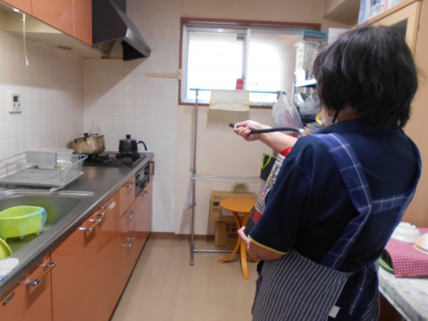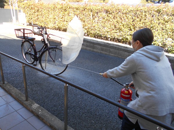 その後はスタッフで水消火器を使い、消火器の使い方を再度確認しました。