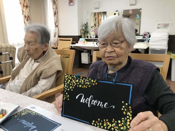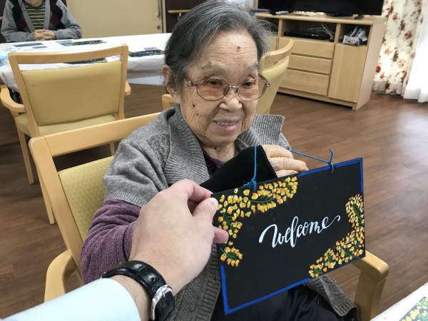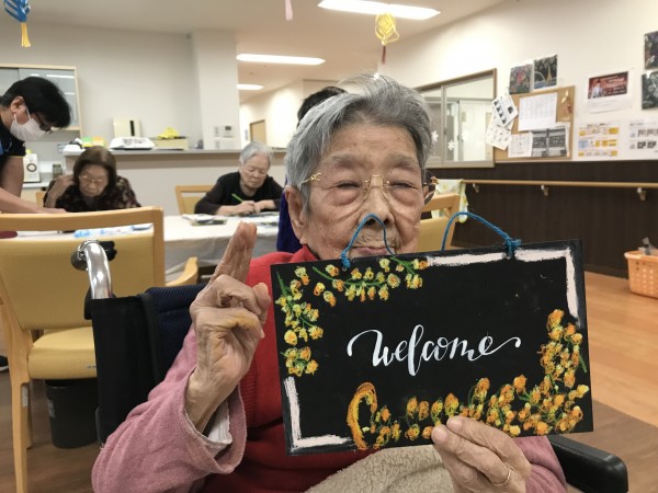 ミモザを描きながらウエルカームボードの作成です(^^♪