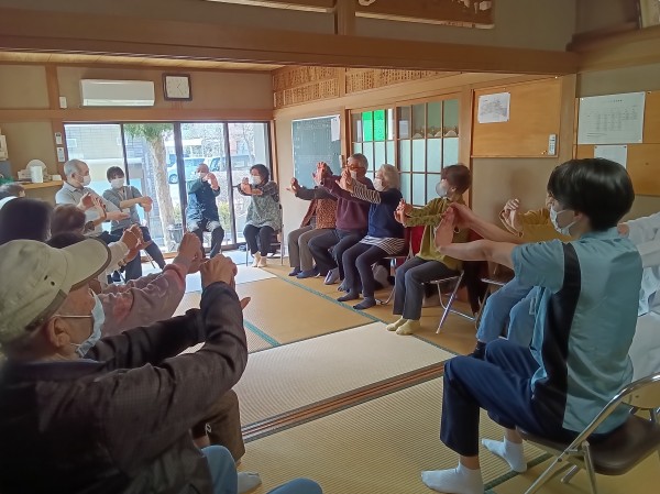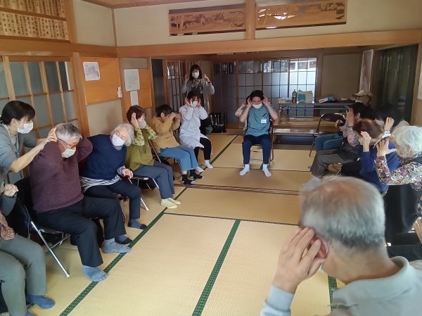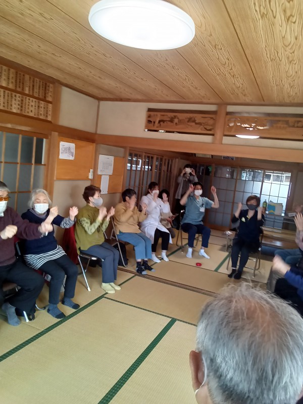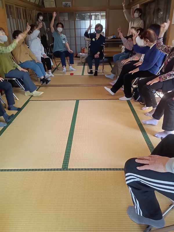 ストレッチのご指導と、「富士の山」の曲に合わせた体操のご指導がありました(^O^)/