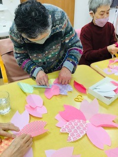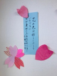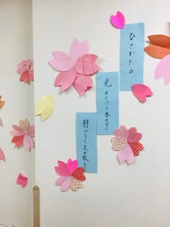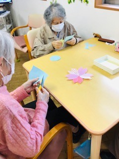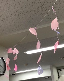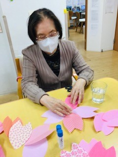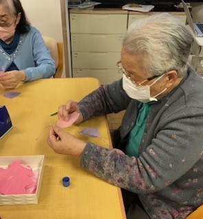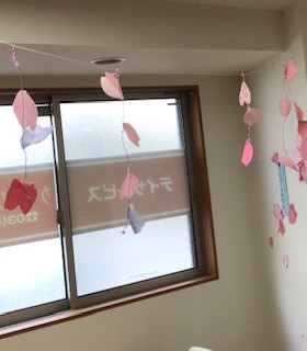 かわいい色紙や、ピンクの包装紙などを切り抜いて、、、