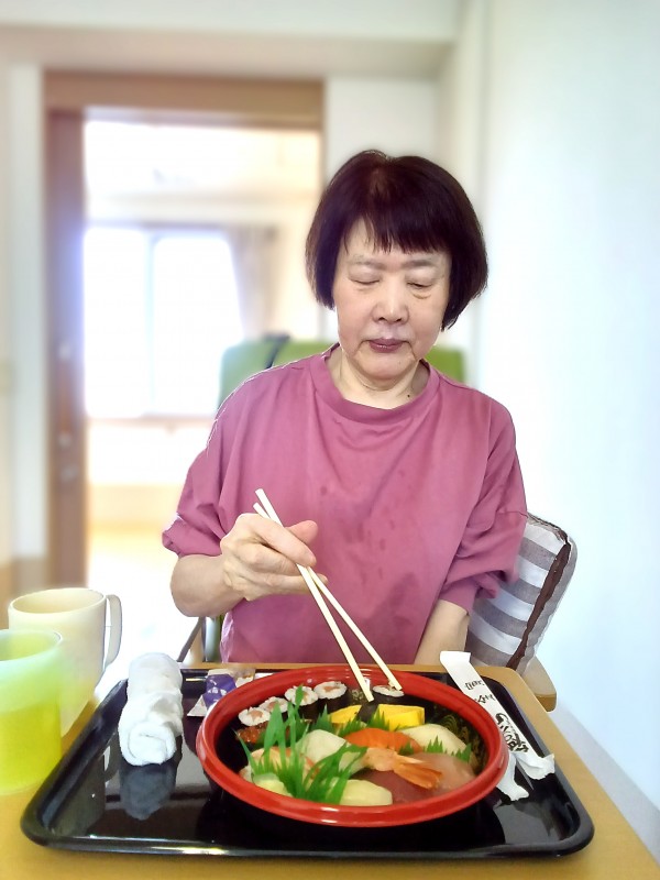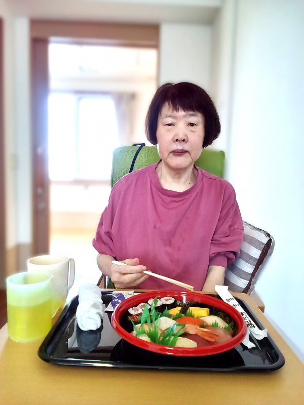 施設では、あまり食べれない特別に山代・握り寿司本マグロ中トロが提供されました。
