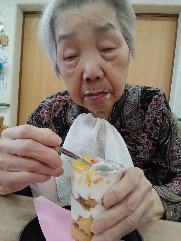 パフェと一緒に杏仁豆腐もお出ししました!どちらも甘いものになってしまいましたが、皆さん甘いものがお好きなので、ペロリと召し上がっていました(^^♪