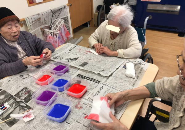 午後のレクリエーションでは和紙染めを行いました!