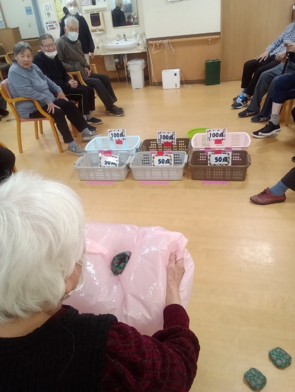 前に置いてあるカゴに点数が貼ってあり、そこを狙って合計点数を競うのですが……