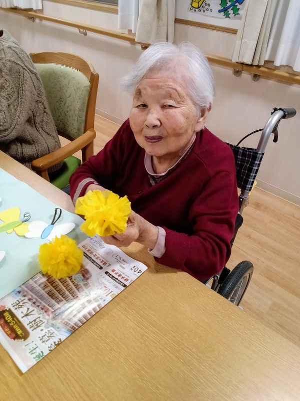 春の壁飾りとして2Uの皆さんが協力して作っている菜の花畑が出来上がりました\(^o^)/