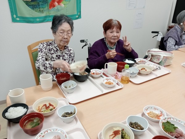 昼食にぶりのお刺身とあら汁がついていよいよ実食です(*''▽'')