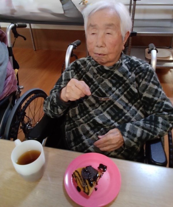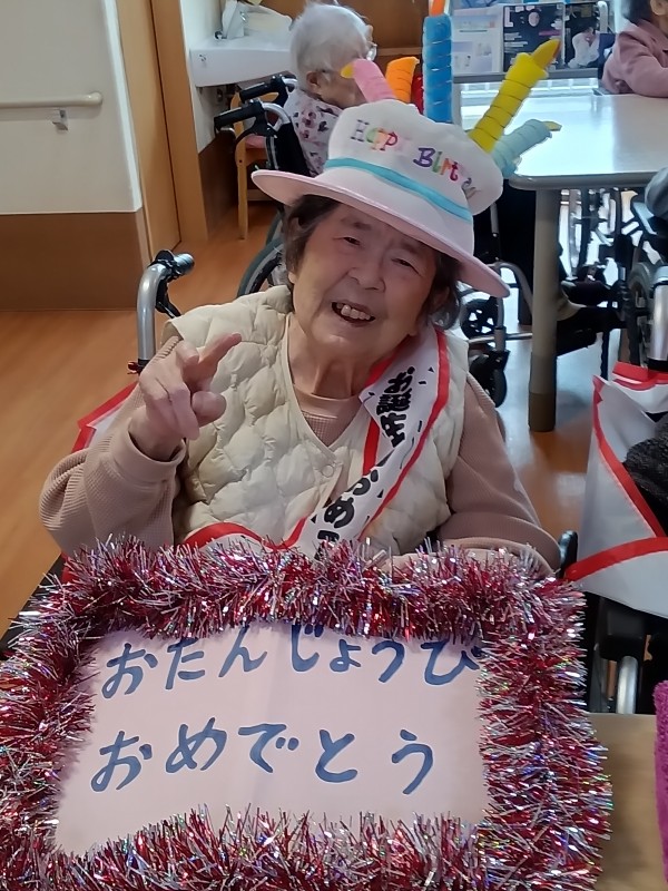 皆さんから「ハッピーバースデー」の歌を唄ってお祝いされ職員からはカードと手作りケーキを♡