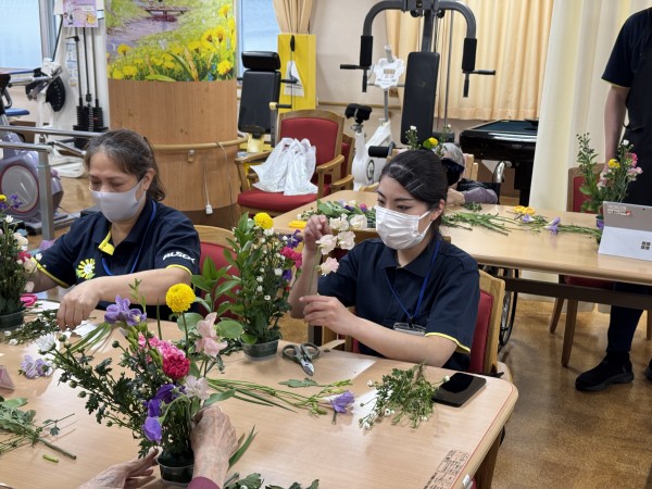 皆様真剣な表情でお花と向き合っております(笑)!