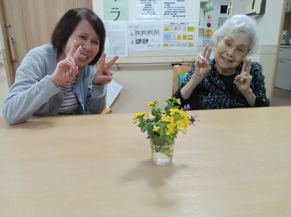 ホームに咲いている花や桜を見に行きました。