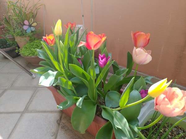 だいぶ暖かくなりましたので、ベランダのチューリップが