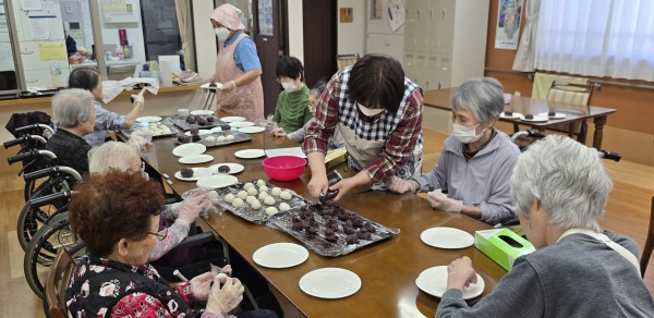 先日、ご利用者様の皆様とともに、おはぎを作って食べました!