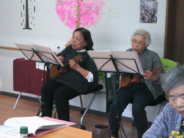 今日はボランティアさんによるウクレレ演奏のご様子をお知らせいたします。 ウクレレに合わせて歌をうたいました。