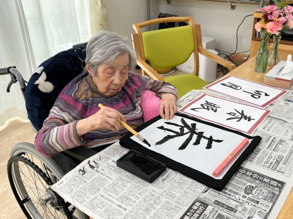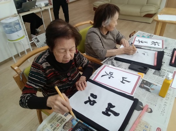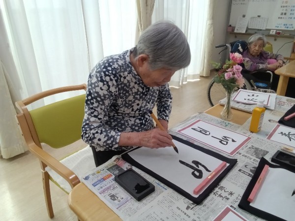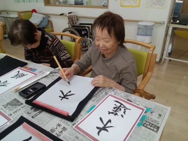 この日のレクリエーションは書道でした!