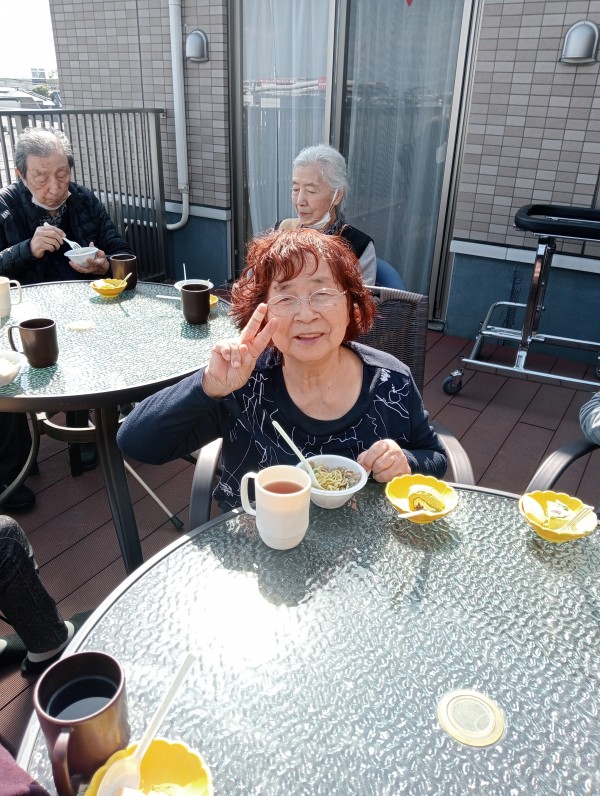 風が収まって陽射しも出てきたので、テラスで召し上がっていましたよ