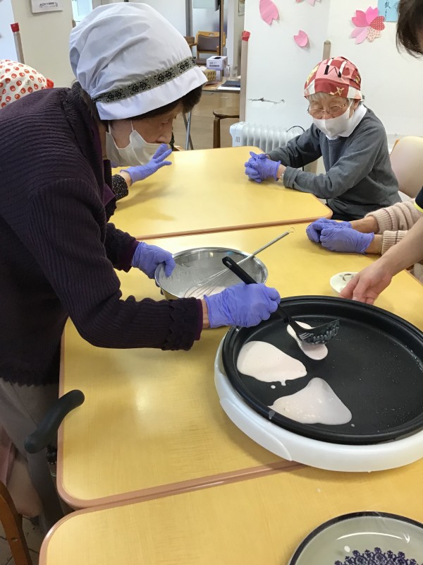 桜の葉を敷いて、その上に薄皮、そしてアンコを包みます(*^^*)