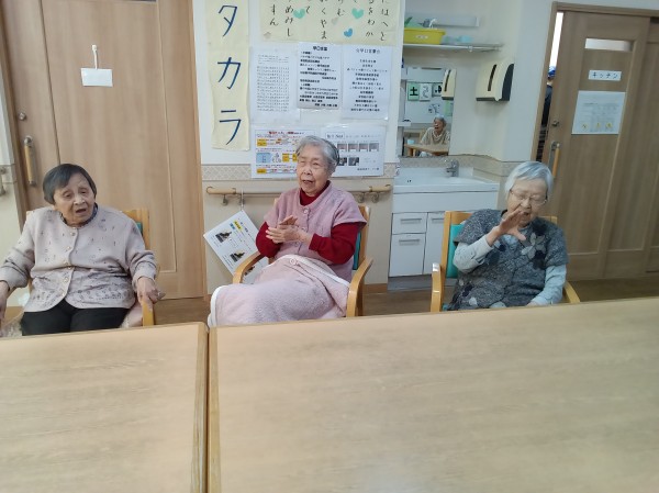 お食事前には各フロアで口腔体操を含めた食前体操に参加していただいてます。