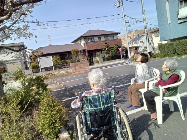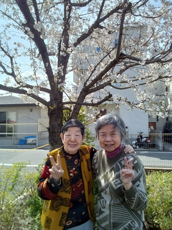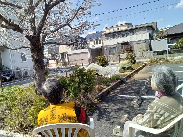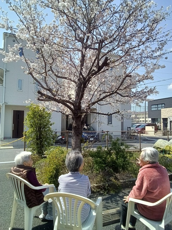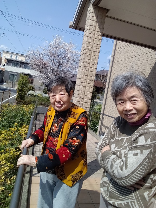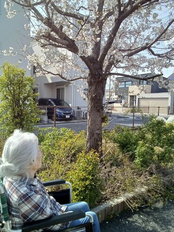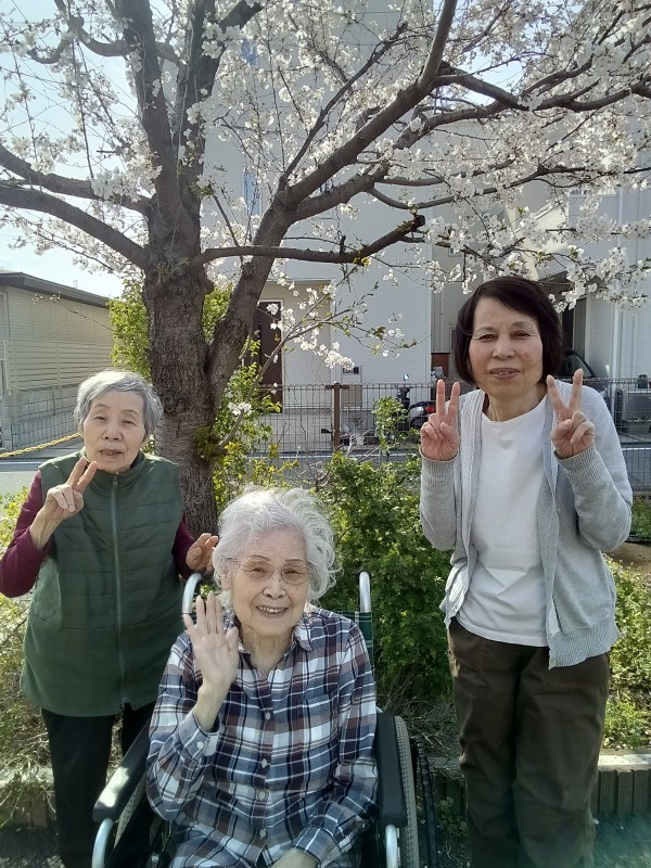 ホームの桜も八分咲きとなり、ご利用者様の素敵な笑顔をお伝えします。