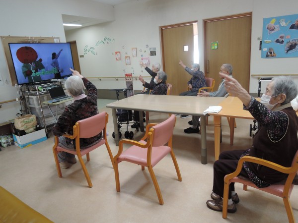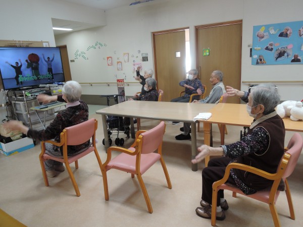 歌に合わせて体を動かすよ☆皆さん上手に体操しております。