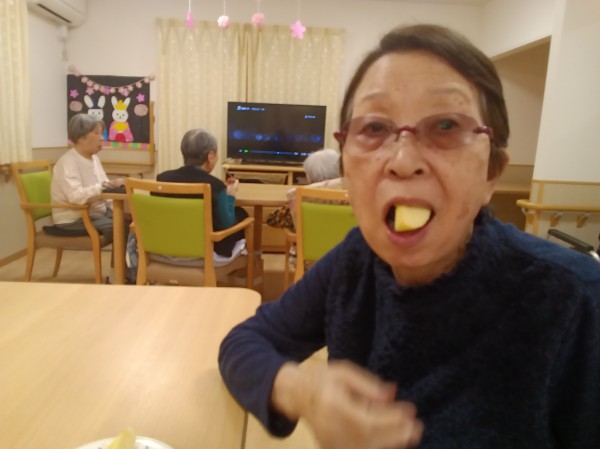 入居者様に剥くのをお願いすると、するする~とあっという間に剥いて下さいました!