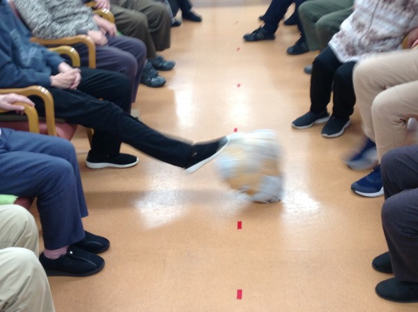 最後はサッカーゲーム!皆様が使った新聞紙を全部丸めてサッカーにし、互いのゴールに向けてシュートしあいました!