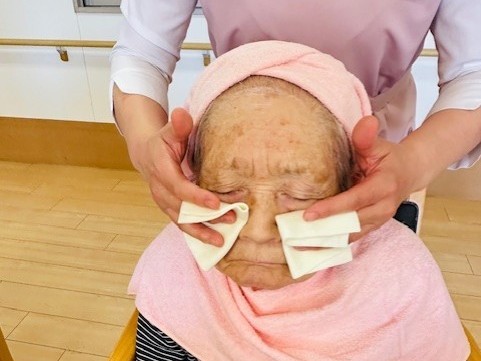 シニアセラピーの施術を受けて幸せそうにしていた利用者様を発見!