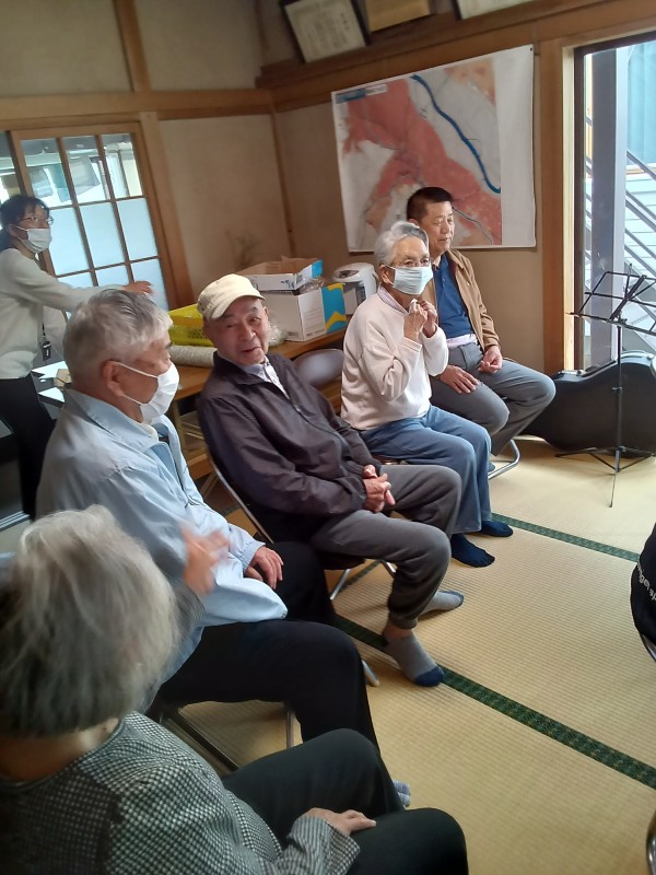 前回ご紹介した「北国の春」の他、「上を向いて歩こう」の曲に合わせて体操しました。