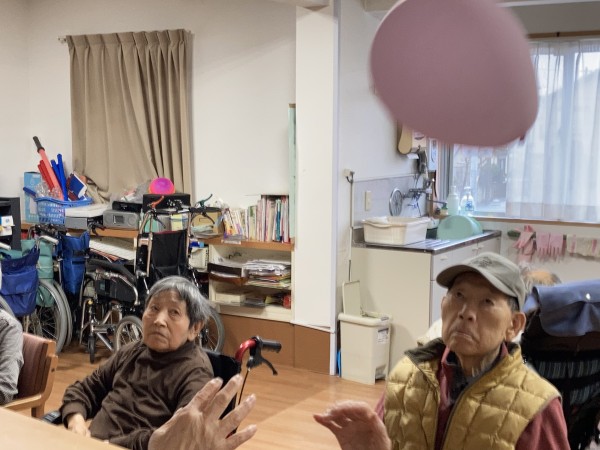 風船バレーの魅力は、①風船の動きがゆっくりのため皆さんが参加しやすいこと ②しっかりたたくために風船の動きを追うので集中力・反射神経が増すこと