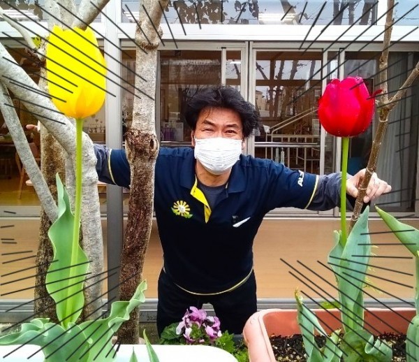 当施設のドライバースタッフが丹精込めて育てたチューリップがとてもきれいに咲きました☆