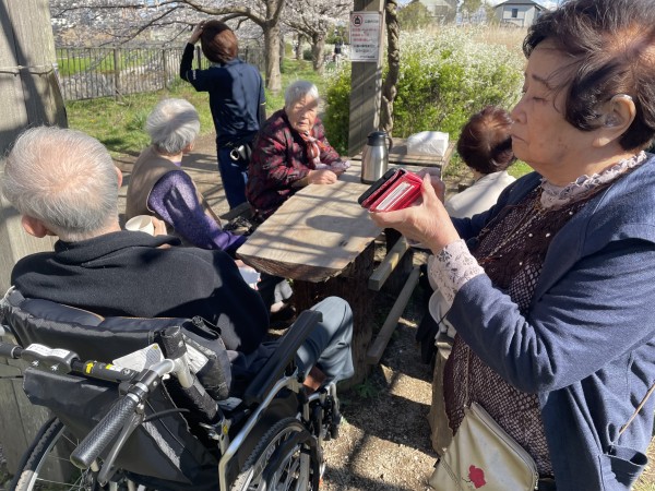 みなさん桜越しに空を見上げ清々しい表情をされていました。