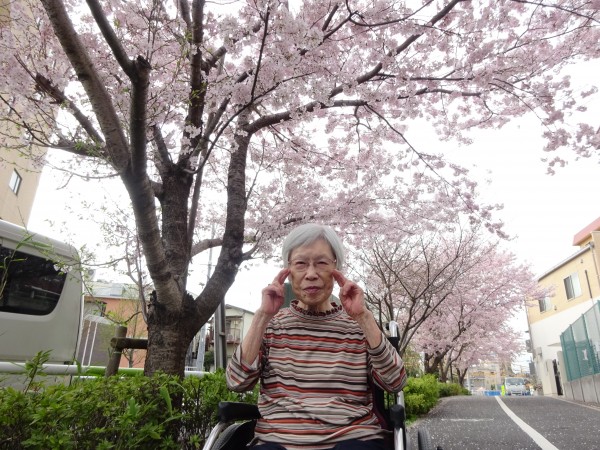 私たちもご入居者様とともに外に桜を見に行ってみました!