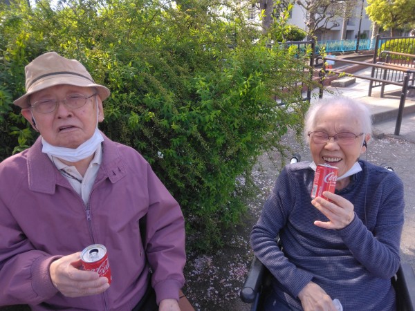 お弁当はないけれど、缶コーラがありますよ。ベンチに座って飲みましょう!