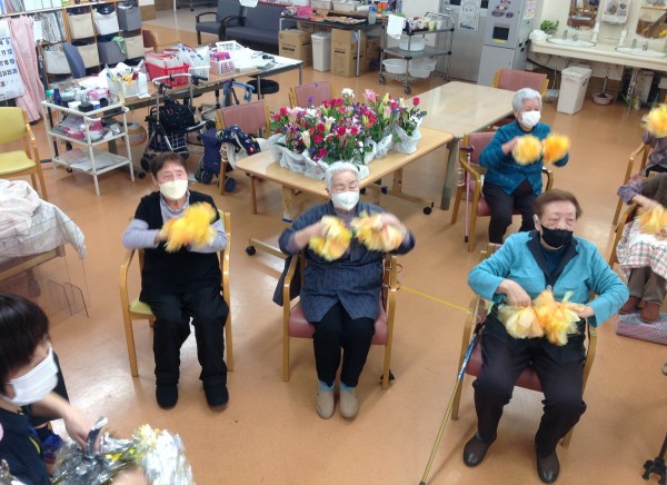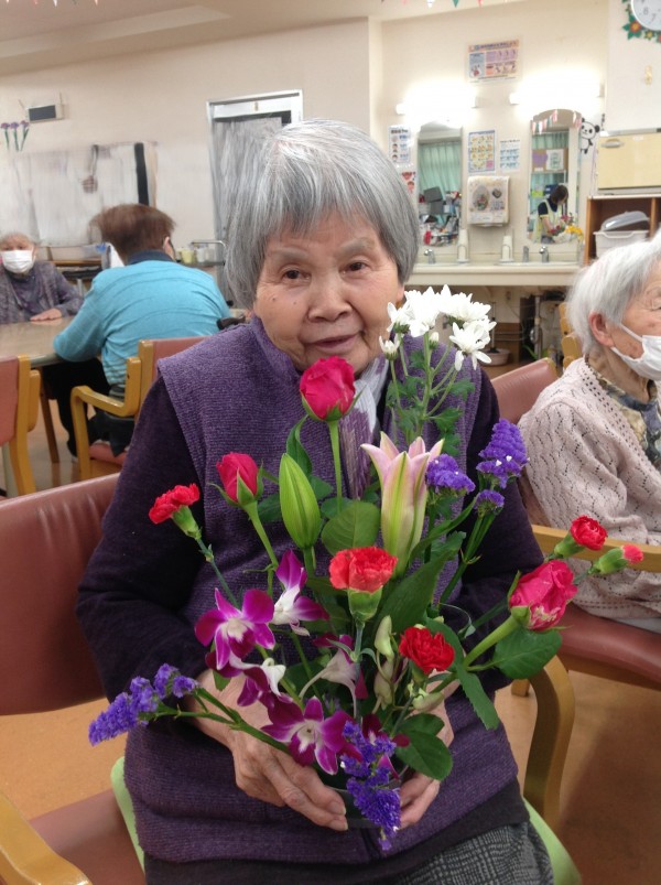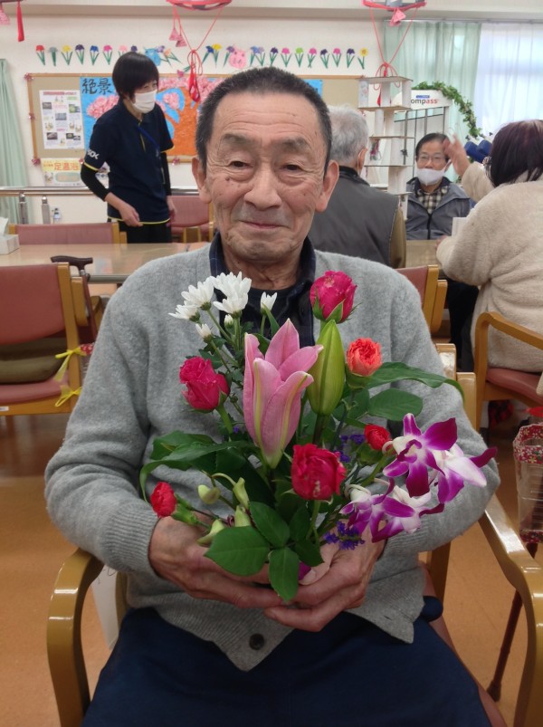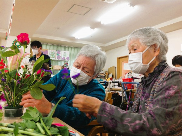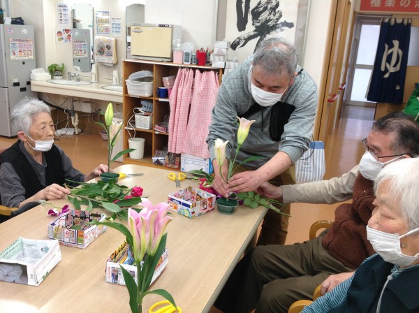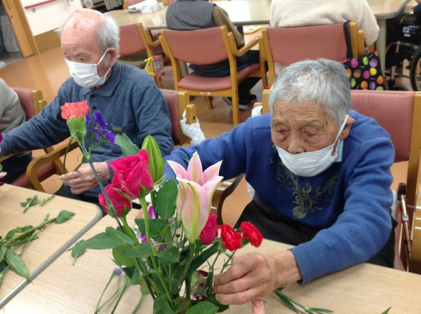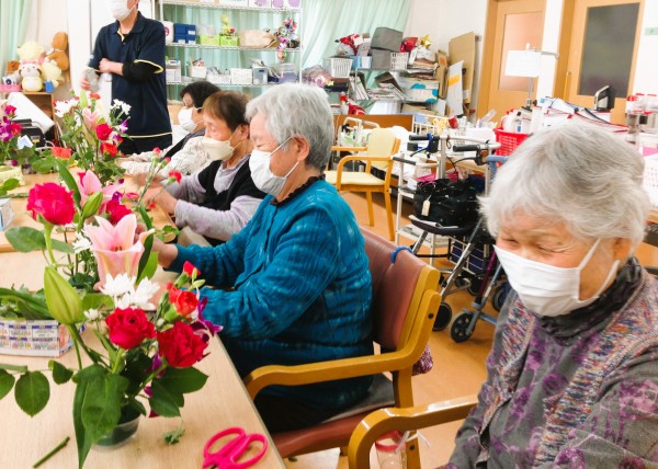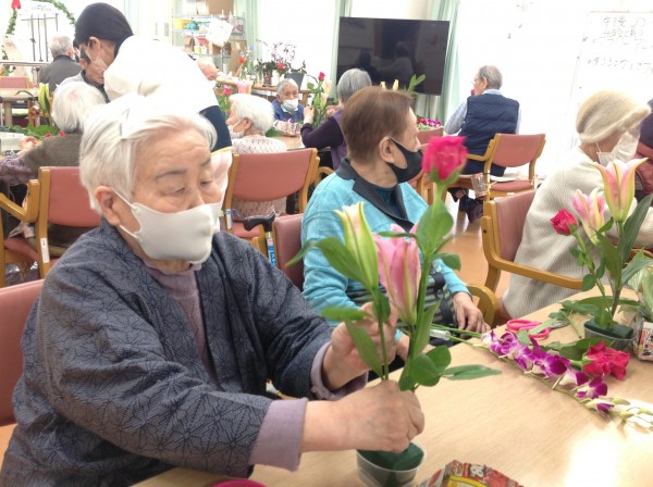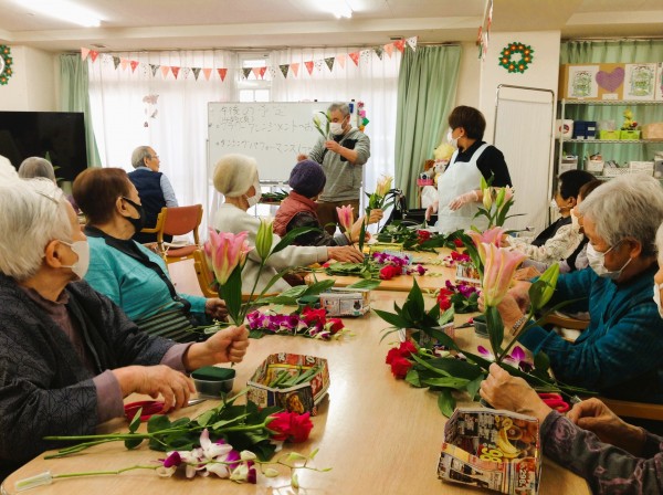 毎回恒例のフラワーアレンジメント教室は、今回も同じ建物内のグループホームの入居者様も参加されました