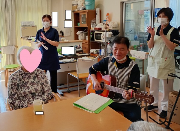 今月は7名の方が、お誕生日を迎えられ、職員のギターによる伴奏のもと、みんなでハッピーバースデーの歌をうたってお祝いをしました。
