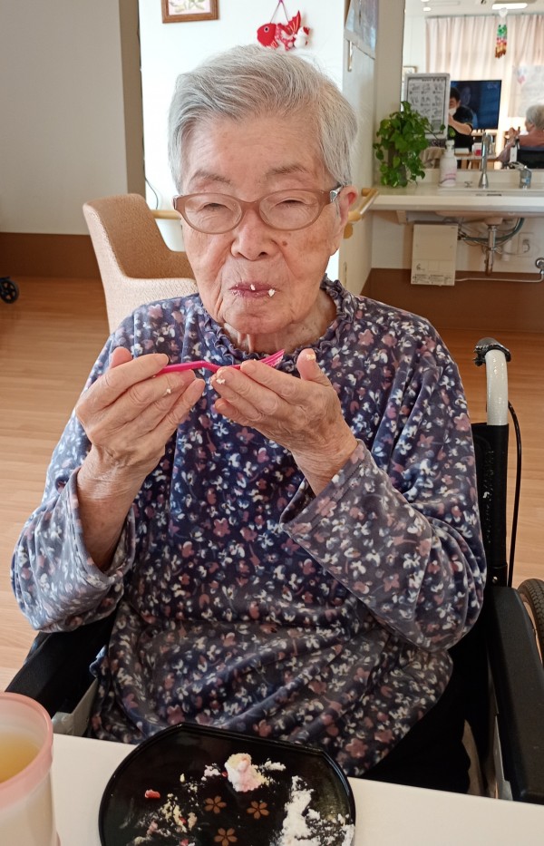 お祝いの後、おやつにケーキを美味しく召し上がりました。
